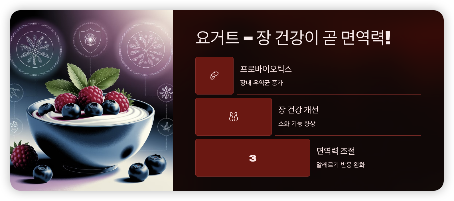 ✔ 요거트 – 장 건강 개선 & 면역 조절