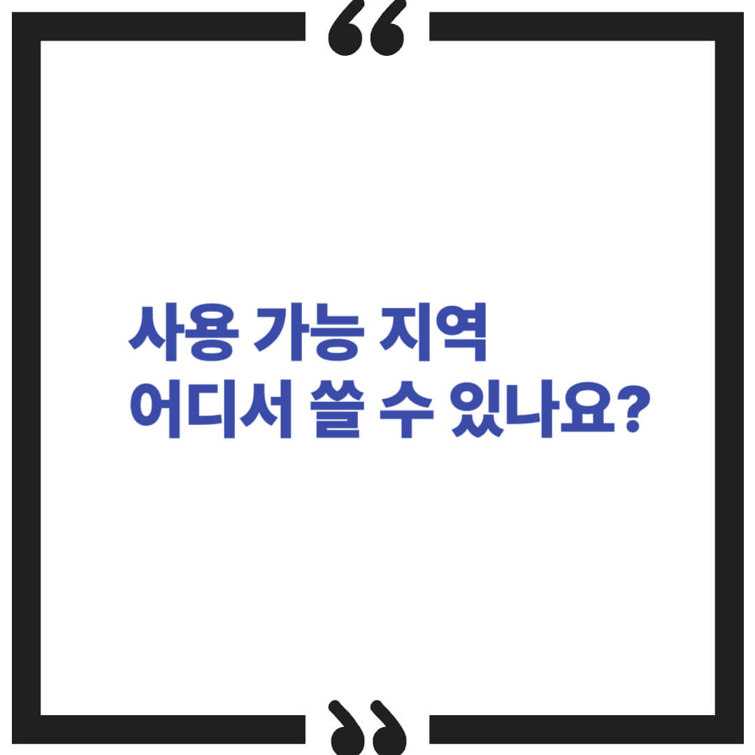 - 특별시·광역시: 서울, 부산, 대구, 인천, 광주, 대전, 울산 등은 시 전역에서 사용 가능합니다. 예: 서울 거주자는 서울 어디서나 사용 가능.